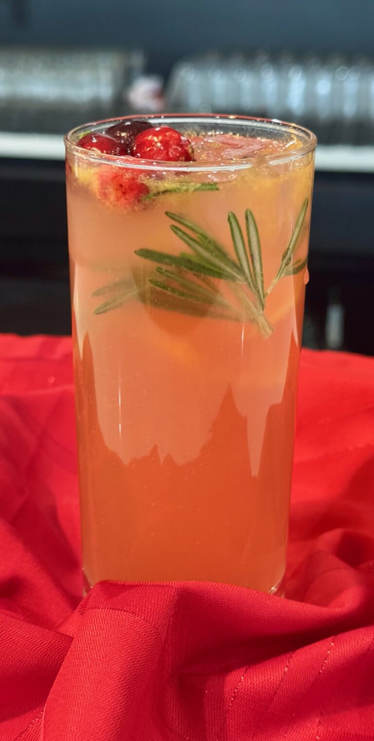 Preparation: 2-parts. First, muddle your rosemary and orange peel in the short end of your Bostin shaker with your vodka. You really want to work it over to release the orange essence and herbal notes of your rosemary. Second, pour all contents into a Collins glass. Pour your spirits and the remaining ingredients and gently stir to combine. Top with ice and garnish with fresh cranberries.